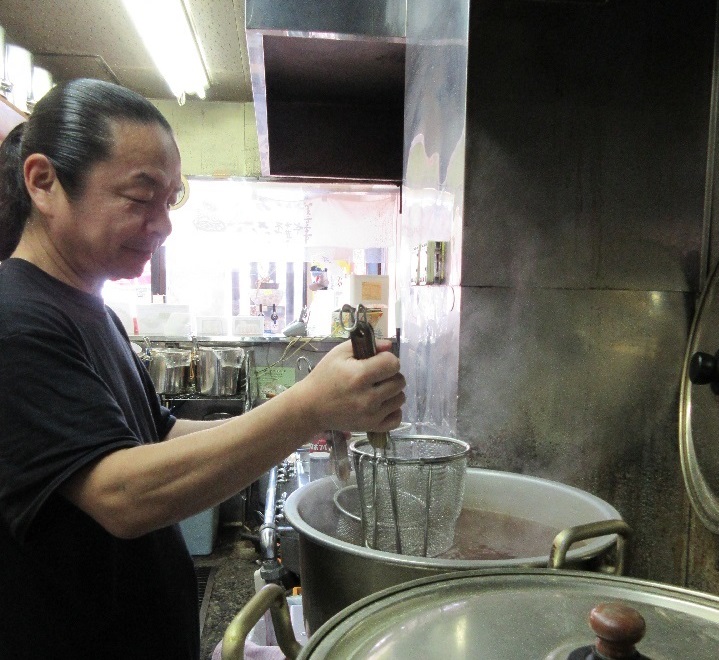(程よいとろみと甘さ控えめのスープが特徴つけ麺専用の太麺でどうぞ)