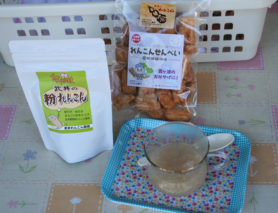 訪問した際は、蓮根の自然なとろみがついたれんこんスープを頂きました。伺うといつも武井社長の色々なおもてなしで楽しませてくれます。