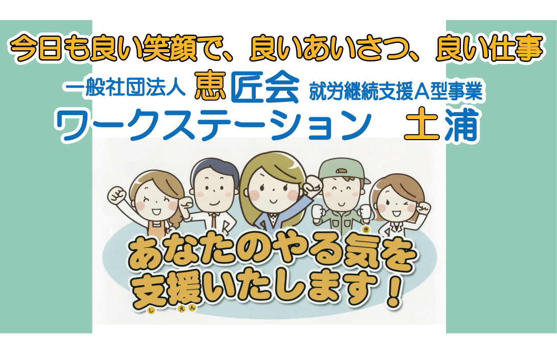一般社団法人恵匠会「ワークステーション土浦」は、平成27年4月に【就労継続支援A型事業】の福祉サービス施設として開設しました。