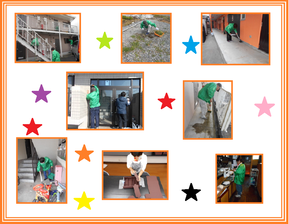 ・商品の検品、梱包作業・製品の箱詰め、箱折り・開店前清掃・アパートなどの清掃や片付け作業・駐車場などの草取り及び整備・農作物の洗浄、仕分け作業など