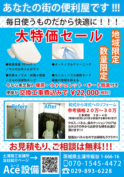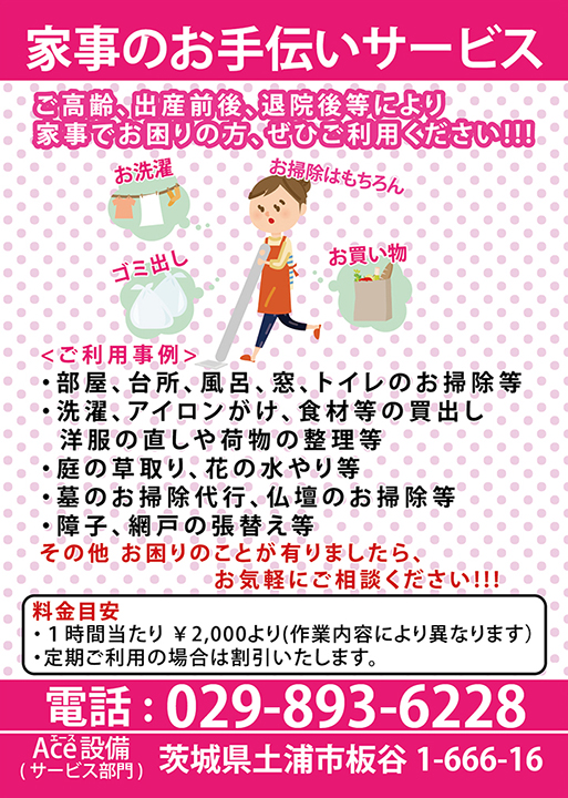 あなたの街の便利屋のAce設備です。日々の生活の事でお困りでしたら、まずはお気軽にご相談ください!!!