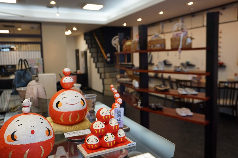 1階に和雑貨など、2階に着物を展示・茶室・着付け教室の和室を設けております。