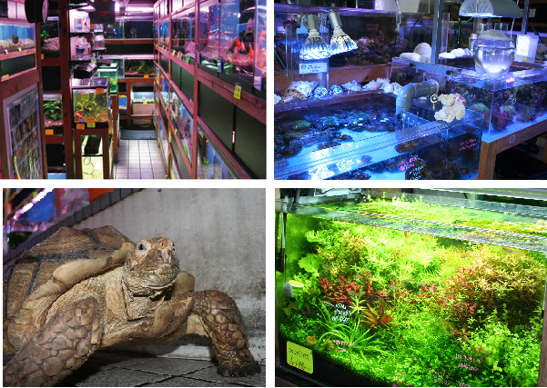 昭和59年の創業、今では水槽の数も、金魚・日淡120本、熱帯魚250本、海水魚30本、爬虫類・両生類30本、水草15本となり、常に800種類以上の生体の世話に追われる毎日です。