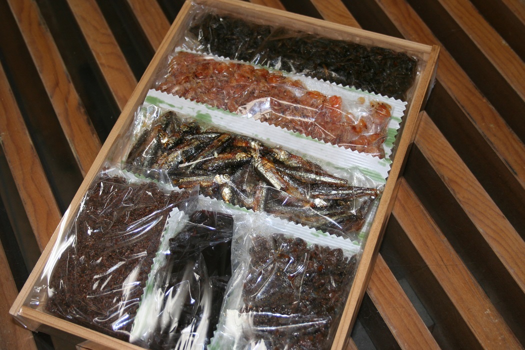 ・海老の佃煮・海老の甘煮・しじみ佃煮・混り煮干・はぜの佃煮・あさり佃煮・あみ佃煮・鮒甘露煮・ちりめんくるみ等